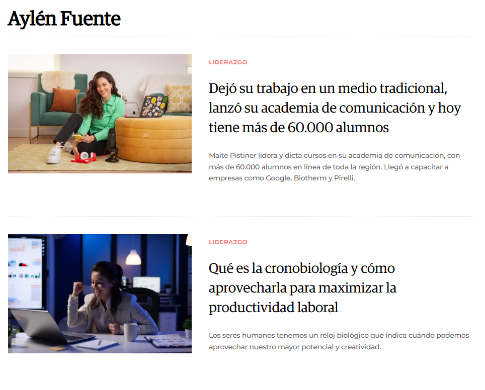 También colaboré con organizaciones, startups y medios como Agencia Ágora, Garage Deep Analytics, Forbes y El Trece, desarrollando proyectos que integran comunicación estratégica, contenido editorial y marketing digital.